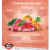 Čerstvé hovězí maso s dýní, pohankou, mangoldem a rozmarýnem. Holistické krmivo vyrobené šetrnou metodou s použitím 40 % čerstvého masa.