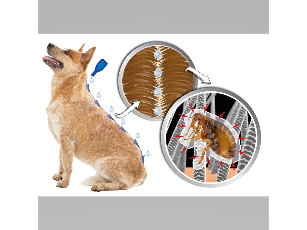 Roztok v pipetách, který imobilizuje parazity fyzikální cestou, pro středně velké psy.