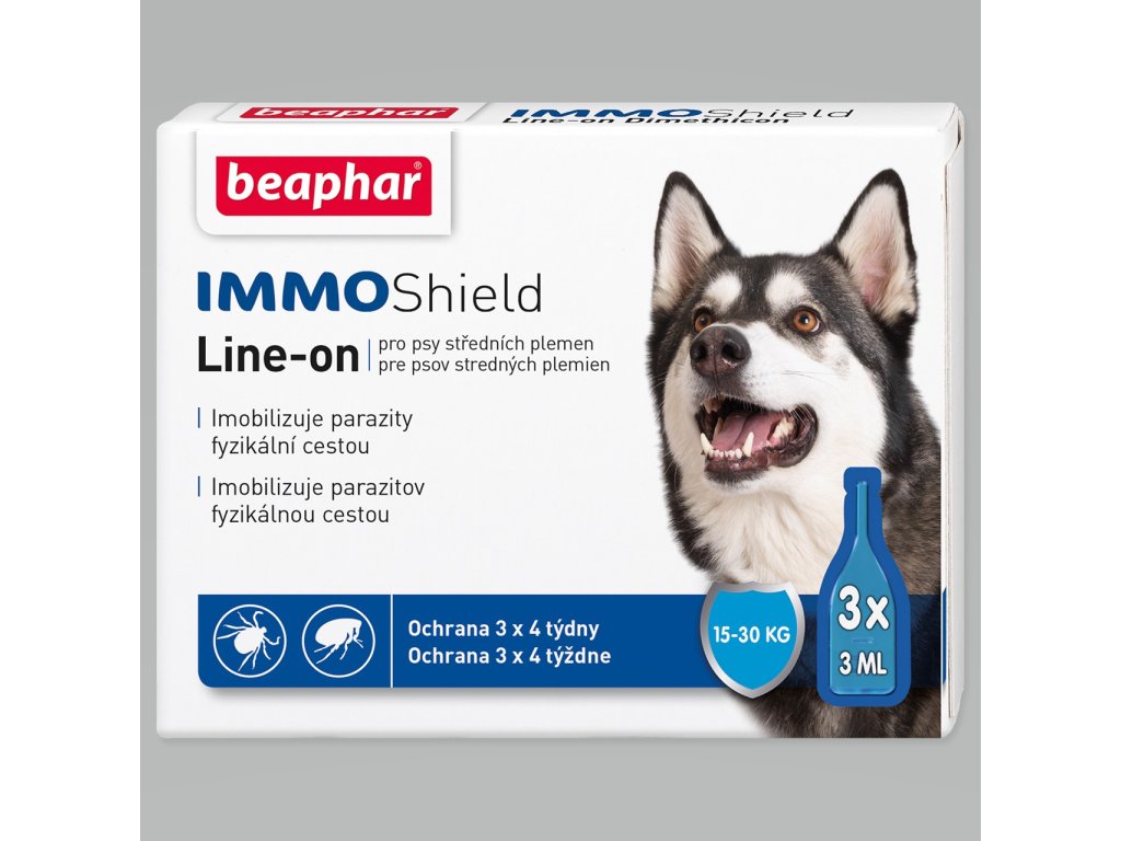 🐶 Beaphar IMMO Shield Line-on M – ochrana proti parazitům pro střední psy (15–30 kg) Účinná a přitom šetrná ochrana pro vašeho chlupáče! Tyto pipety působí fyzikální cestou – obalí blechy, klíšťata a další parazity, čímž je znehybní a zabrání jejich dalšímu šíření.
